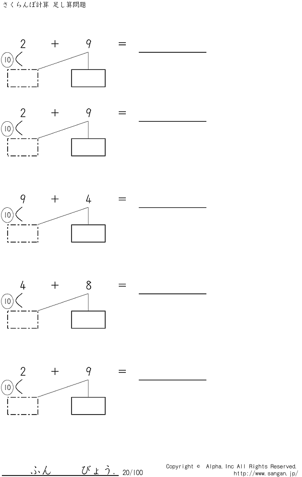 2桁の数+1桁の数(繰上なし) 10より大きい数-1桁の数(繰下なし) 1桁の数+1桁の数(繰上あり) 10より大きい数-1桁の数(繰下あり) 練習しよう! 10に何かをたす;実は、さくらんぼ計算という言葉は、現在~30代のママが小学生の時には、使われていなかった言葉だからです。 とはいえ、ママたちも繰り上がりの足し算や繰り下がりの引き算をする時には 無意識 のうちに、さくらんぼ計算をしているのです。